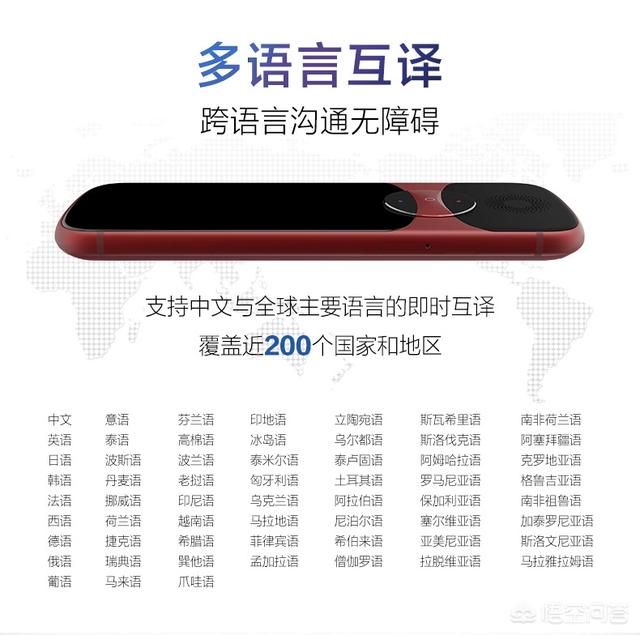 这款翻译机支持多国语言以及多种方言,覆盖全球将近200个国家和地区。反正就是大家常见的地区基本上就都有了,所以只要一机在手,天下随便走。