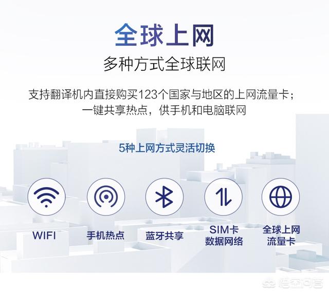翻译机支持5种上网方式,自己可以灵活选择wifi、手机热点、蓝牙共享、sim卡、流量卡等。可能有的地方没有网络,那也没有问题,讯飞3.0支持离线翻译。提前先把语言包安装到翻译机内,到时候就不需要网络了,实现了本地翻译,非常方便。
