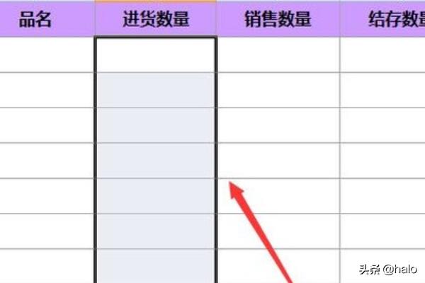 2、制作进货表的表头;