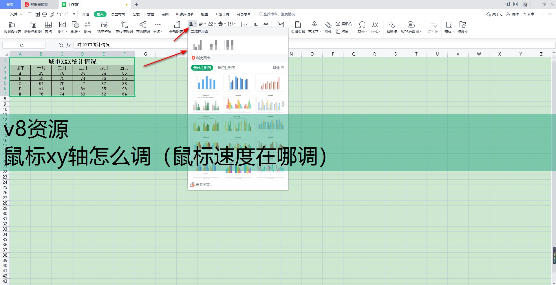将我们需要的表格数据打开,打开之后我们需要将数据表格选中,接着在【插入】选项卡下,选择插入【柱形图】,选择自己需要的一个柱形图样式。